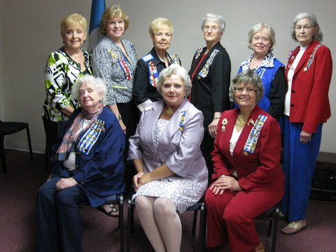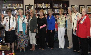 Installation of officers: Ann Sims, Jean Barnhill, Bonnie Parks, Sandra Braun, Paula Dossett, Claire Mahaffey, Sue Hereford, Marye Thornby, and Mary Peklewsky |