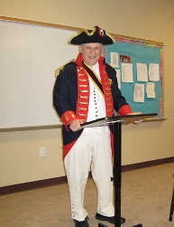 General Von Stueben Speaker: Don Stone, SAR member Don Stone, distinguished historian, appeared in period costume and spoke to the German influence during the Revolutionary War. His representation of General Von Stueben and costume were very interesting and spawned member participation. The chapter really enjoyed having Don as its guest speaker. |